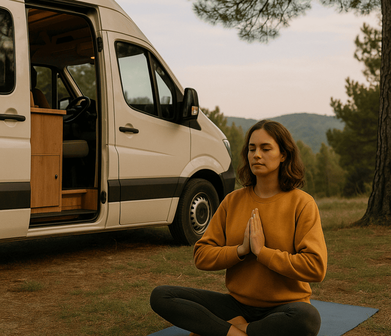 No necesitas un gimnasio para cuidar tu cuerpo. Una caminata por el bosque, unos estiramientos al sol o una tabla corta de yoga junto a la furgo pueden cambiarte el día. Lo importante es moverse, oxigenarse, activar el cuerpo.